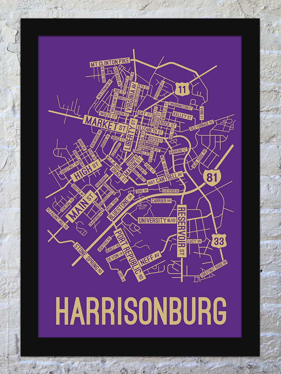 Harrisonburg, Virginia Street Map Poster School Street Posters